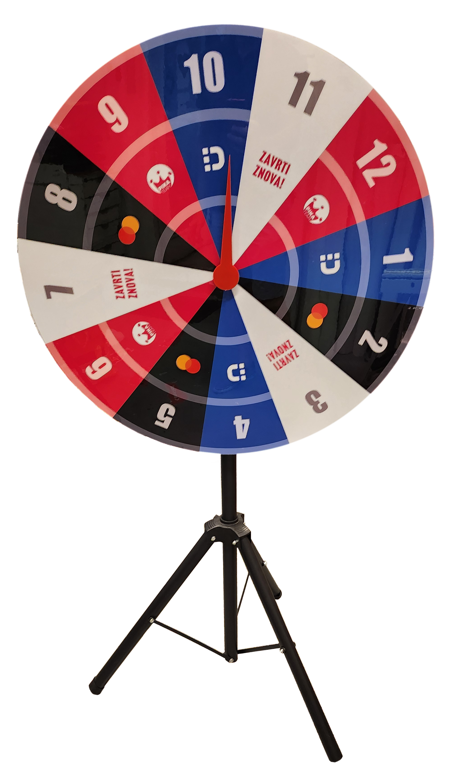 Iščete način, kako bi na stojnico privabili več potencialnih strank? Naše stoječe kolo sreče z osrednjo puščico vam bo pomagalo izstopati med razstavljavci na sejmih. S stabilnim stojalom, gladkim vrtenjem in oblikovanjem po meri bo vaša sejemska stojnica deležna velikega števila obiskovalcev, kar vam bo prineslo več povpraševanj in več poslov.